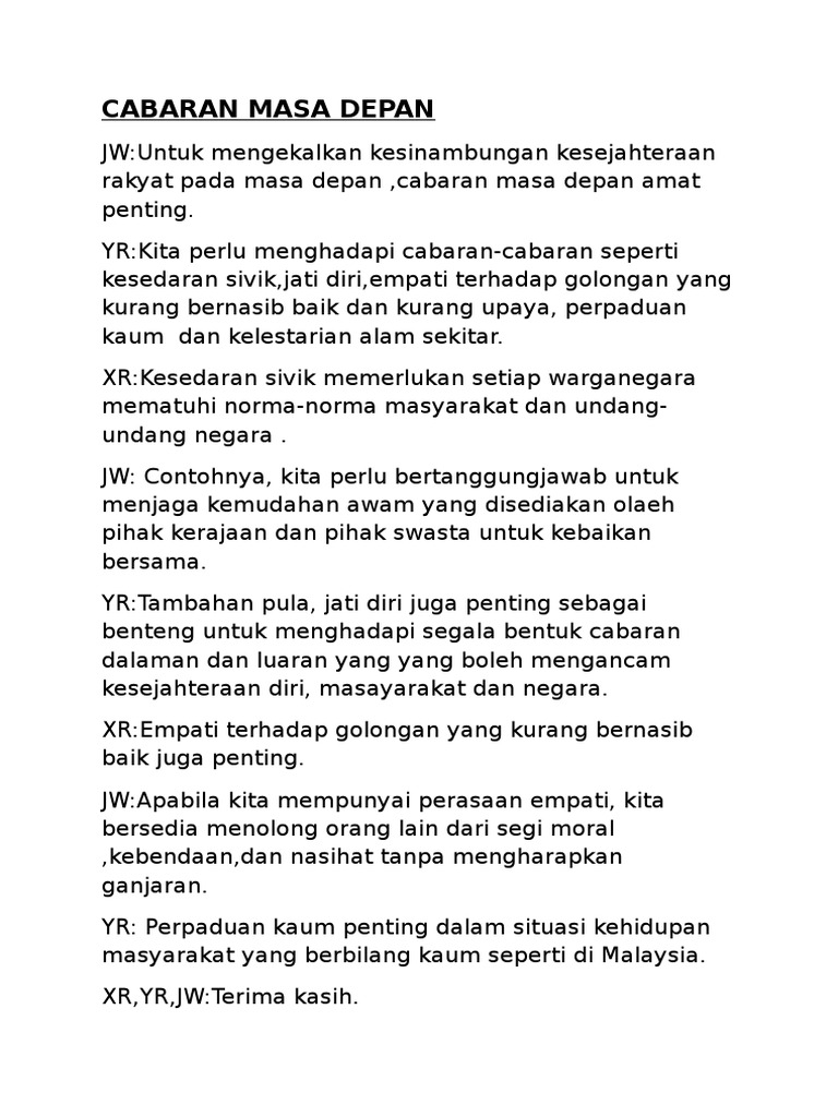 Kerajaan telah melaksanakan pelbagai inisiatif melalui Dasar Pendidikan Kebangsaan Dasar Kebudayaan Kebangsaan Dasar Sukan Alat Perpaduan dan juga Wawasan 2020 bagi menembusi halangan dan cabaran pada masa hadapan. 28032020 Kota Masa Depan di Indonesia. Kita sebagai ahli masyarakat haruslah bersama-sama untuk menghadapi segala cabaran masa depan bagi menjanjikan sektor pelancongan sebagai tulang ekonomi di negara kita.