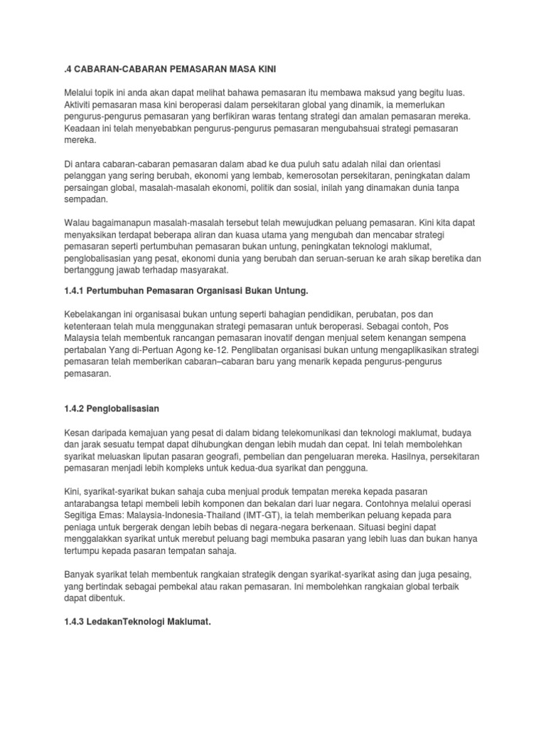 Justeru mereka perlu memberi penekanan yang lebih berat kepada strategi pemasaran mereka. 03042013 Kemajuan teknologi dalam beberapa dekad yang lalu telah banyak meningkatkan daya saing dalam perniagaan dan ekonomi di seluruh dunia.