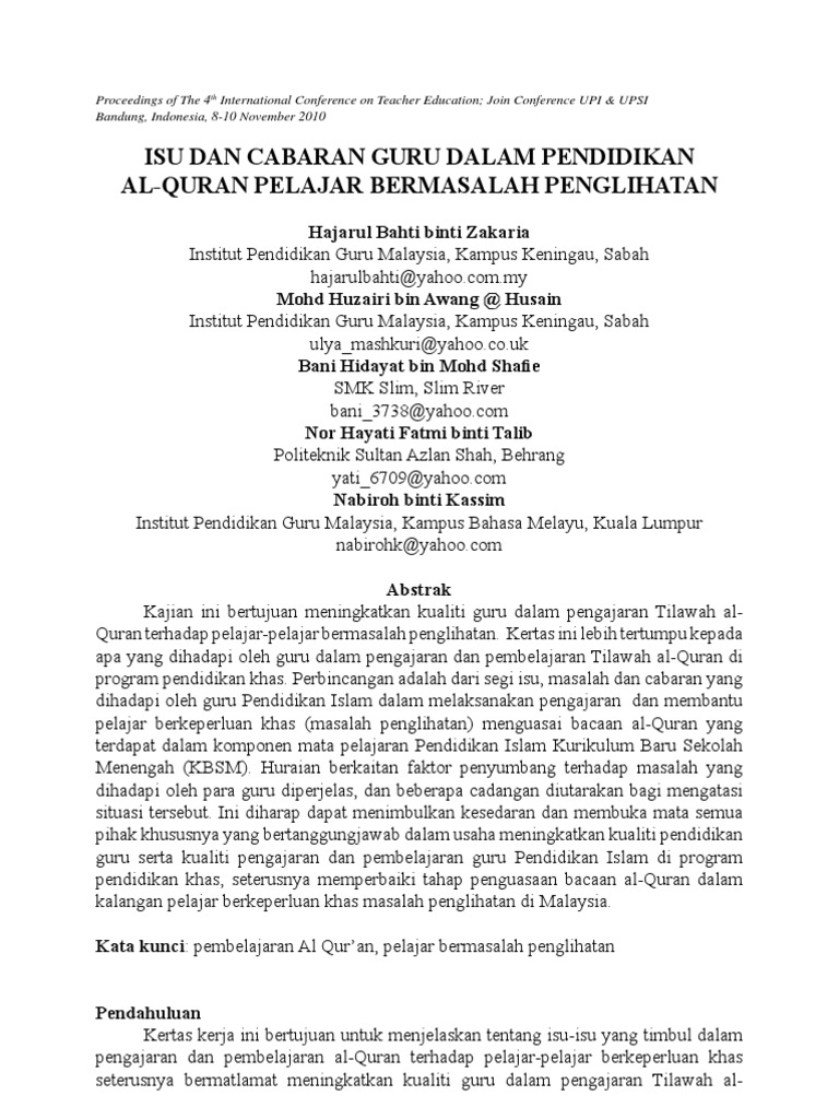Isu Dan Cabaran Guru Dalam Pendidikan Al Quran Pelajar Bermasalah Penglihatan