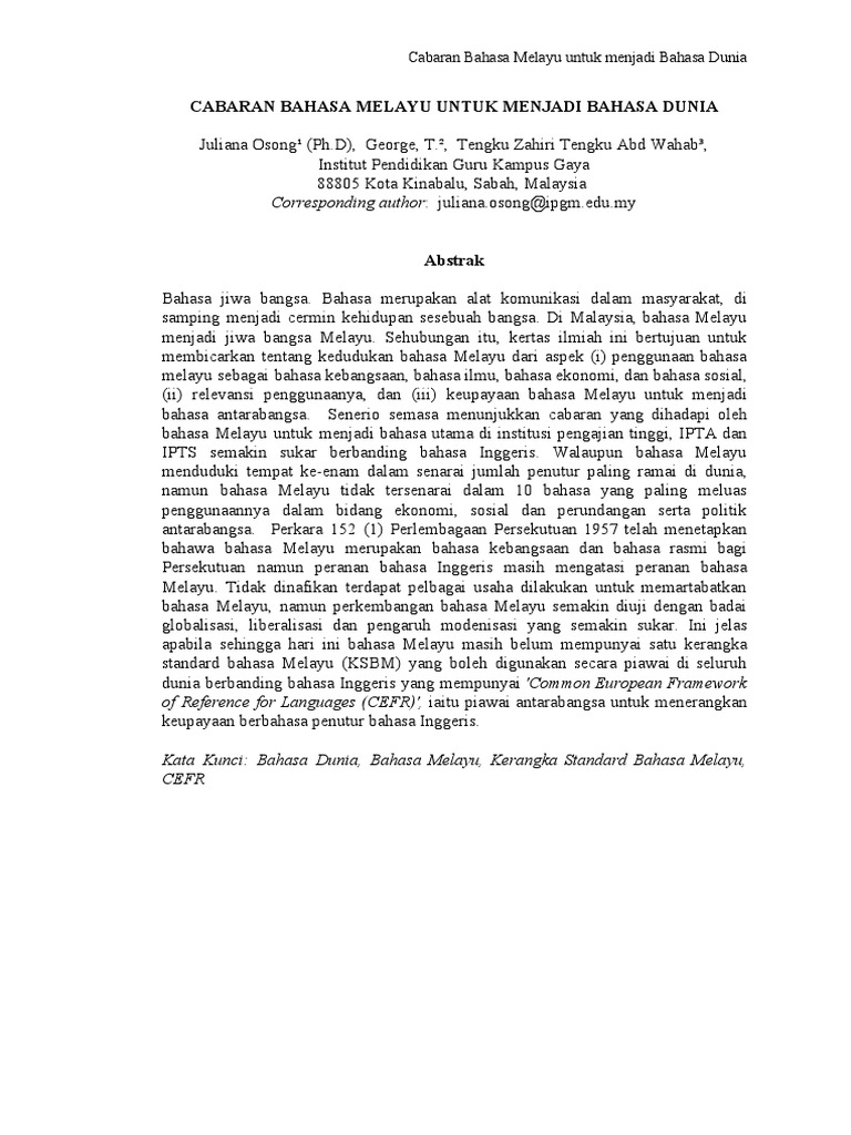 Doc Cabaran Bahasa Melayu Untuk Menjadi Bahasa Dunia Alyssa Simon And Juliana Osong Academia Edu