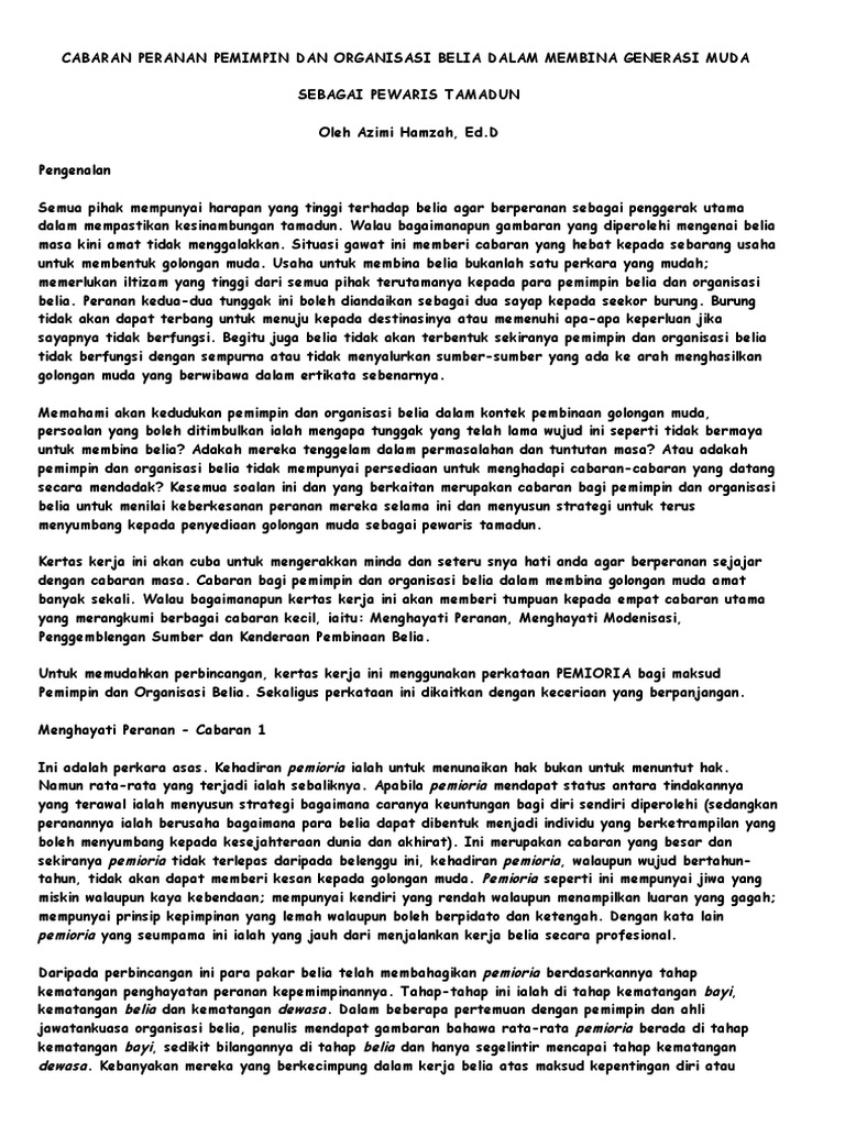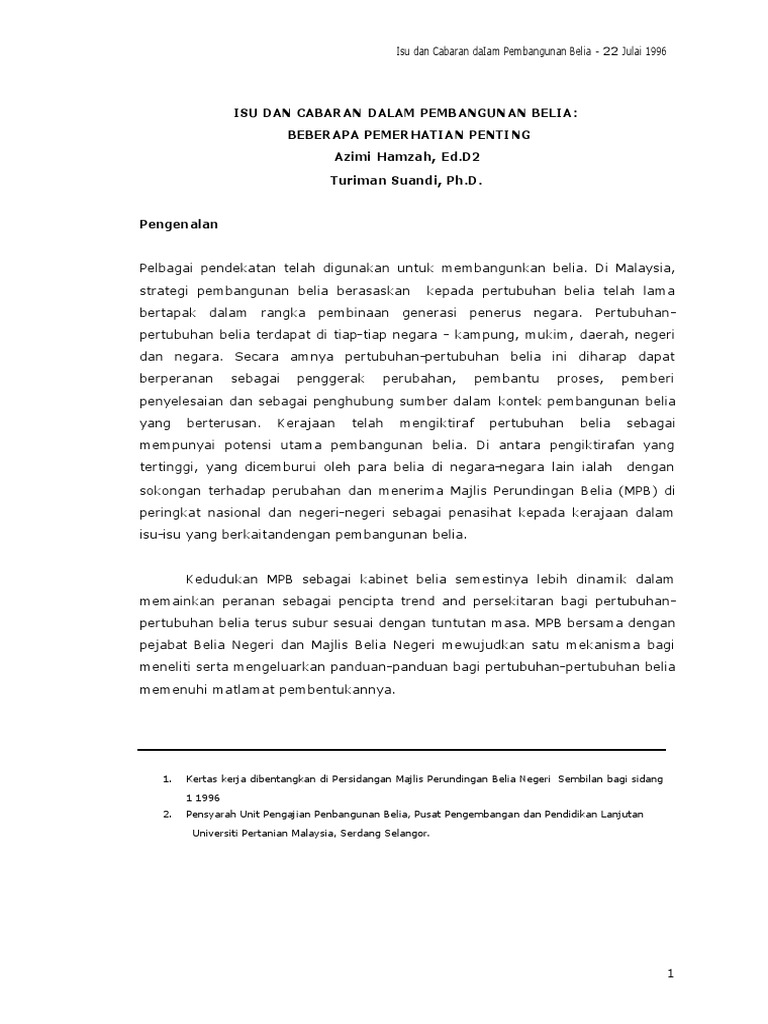 Isu Dan Cabaran Dalam Pembangunan Belia Beberapa Pemerhatian Penting