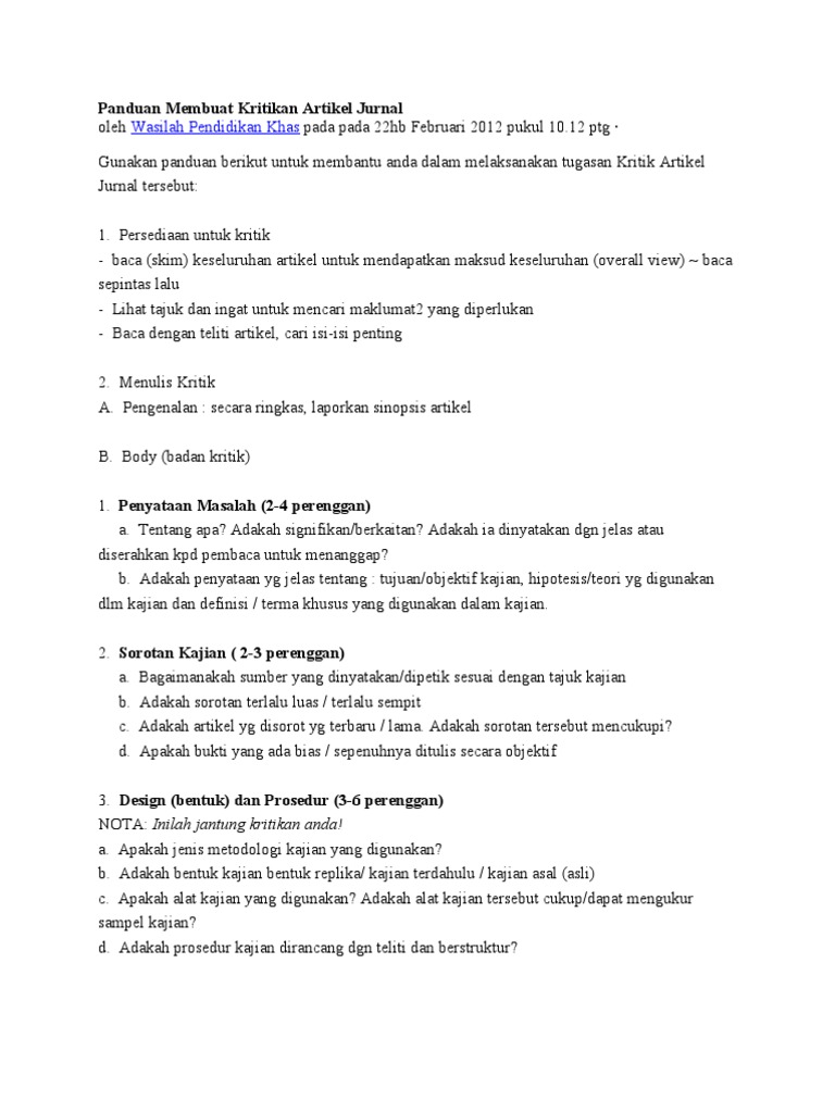 Doc Kritikan Artikel Nurul Huda Academia Edu