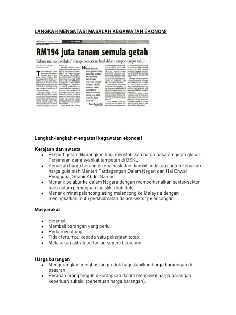 Langkah Mengatasi Masalah Kegawatan Ekonomi