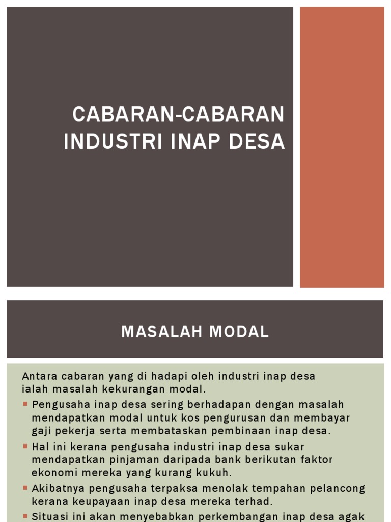 01042015 Antara cabaran yang di hadapi oleh industri inap desa ialah masalah kekurangan modal. Jumlah keseluruhan dana desa sendiri telah ditetapkan sebesar Rp207 triliun yang bersumber dari APBNP 2015 dan akan disalurkan ke 74093 desa di Indonesia. Demikian perasaan yang dirasai sebaik menjejakkan kaki di inap desa Bagas Zakariah di Kampung Lawas Kuda Gopeng Perak ini.