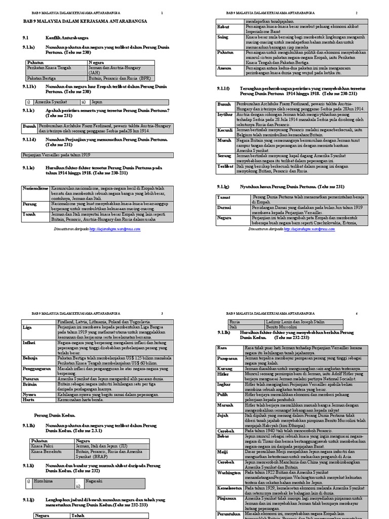 PERANG DUNIA PERTAMA 1914-1918 aHuraikan sebab-sebab berlakunya Perang Dunia Pertama pada 1914-1918. 24102010 BAB 9 TING 5. Harapan untuk masa depan ekonomi Malaysia yang lebih cemerlang 5 Markah.