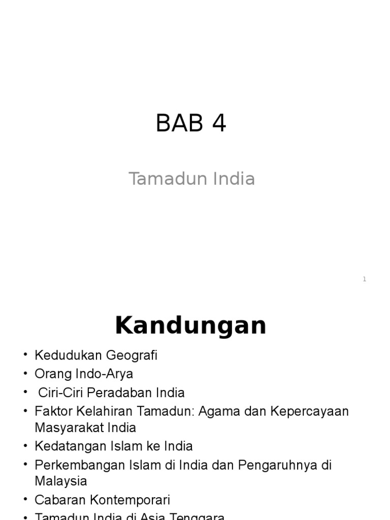 Tamadun India 2018 Pptx Bab 4 Tamadun India Normaizura Md Zain 1 Kandungan Kedudukan Geografi Orang Indo Arya Ciri Ciri Peradaban India Faktor Course Hero