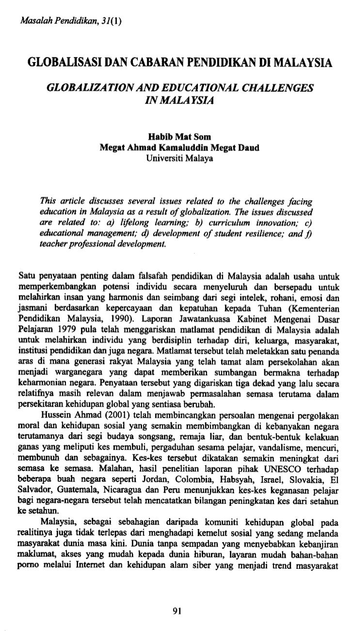 Pdf Globalisasi Dan Cabaran Pendidikan Di Malaysia Globalization And Educational Challenges In Malaysia Anita Ali Academia Edu